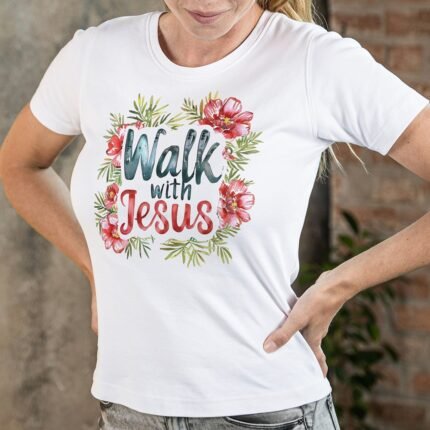 Remera con diseño cristiano con flores Cód. FFR018