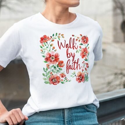 Remera con diseño cristiano con flores Cód. FFR017