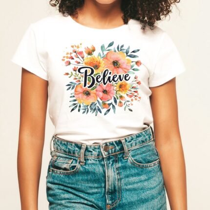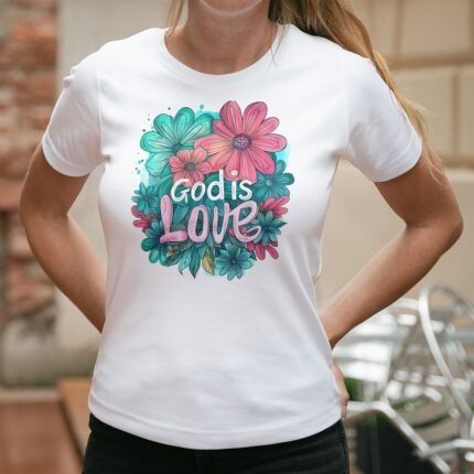 Remera con diseño cristiano con flores Cód. FFR025