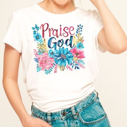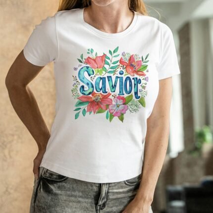 Remera con diseño cristiano con flores Cód. FFR046