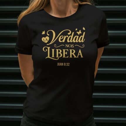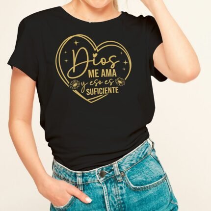 Remera con diseño cristiano en dorado Cód. FAD006