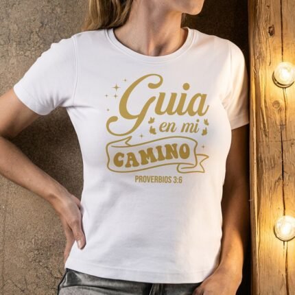Remera con diseño cristiano en dorado Cód. FAD007