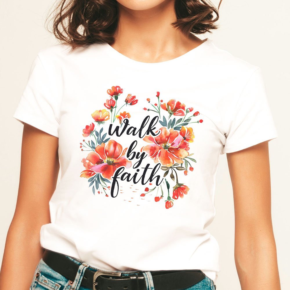 Remera con diseño cristiano con flores Cód. FFR008