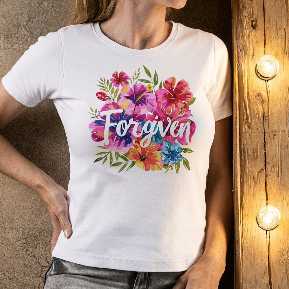 Remera con diseño cristiano con flores Cód. FFR035