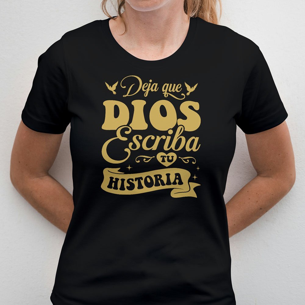 Remera con diseño cristiano en dorado Cód. FAD028