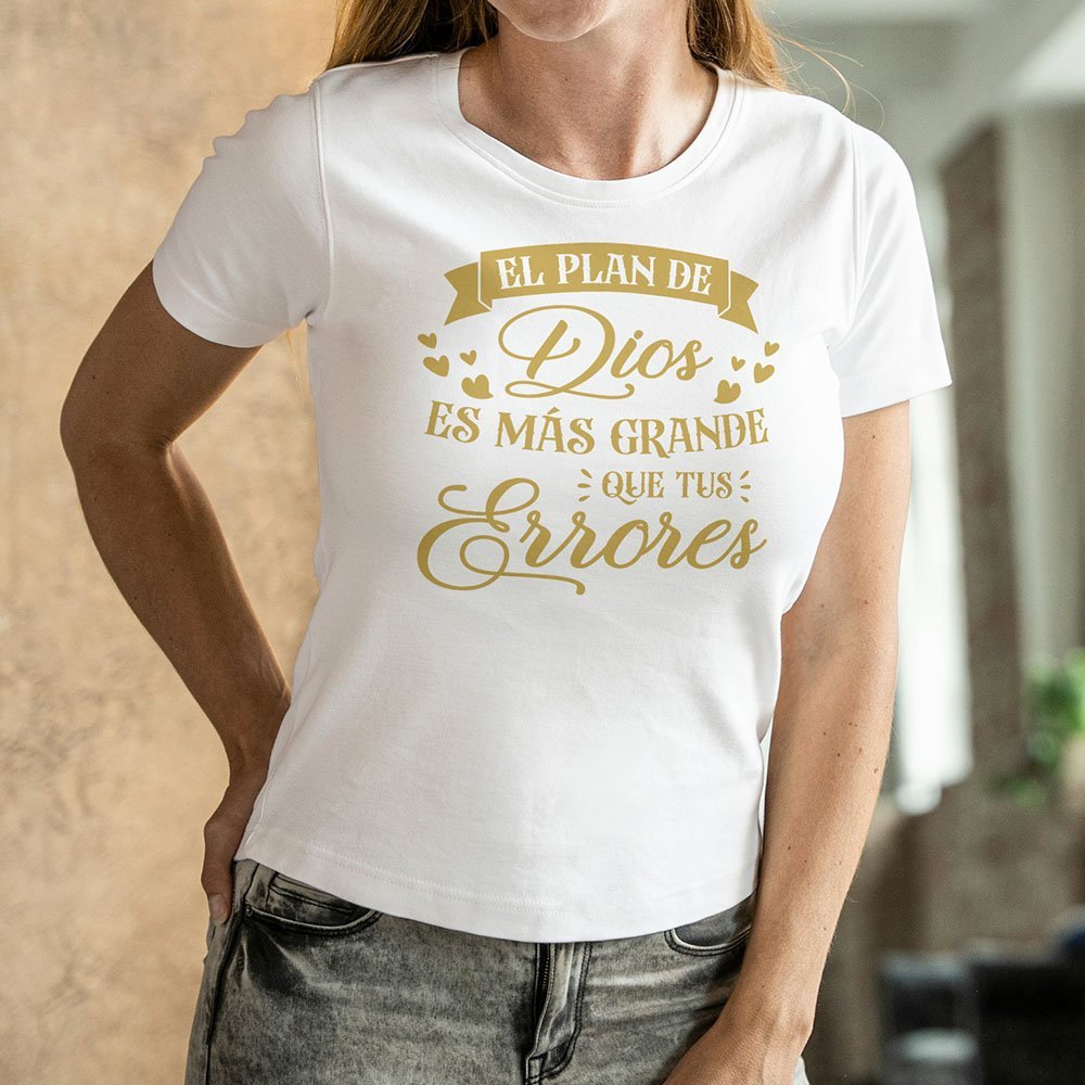 Inicio Femenino Remera con diseño cristiano en dorado Cód. FAP022