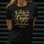 Remera con diseño cristiano en dorado Cód. FAP029