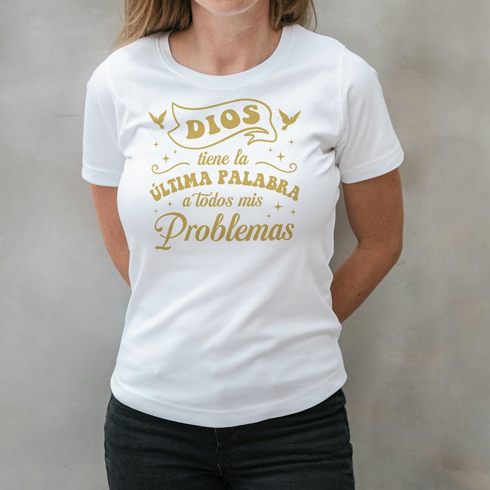 Remera con diseño cristiano en dorado Cód. FAP030